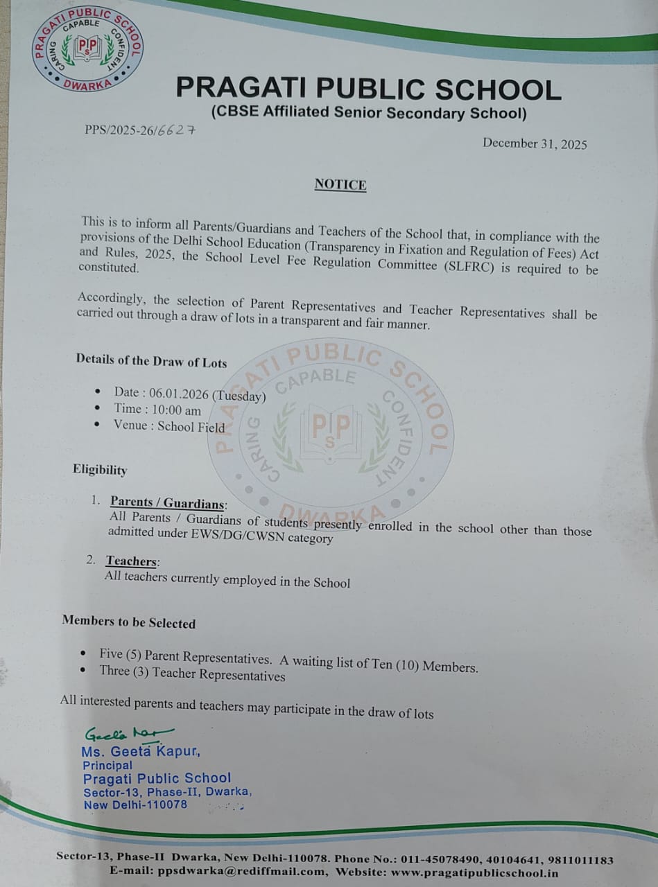 Notice (Draw of Lots for Constitution of School Level Fee Regulation Committee (SLFRC) )